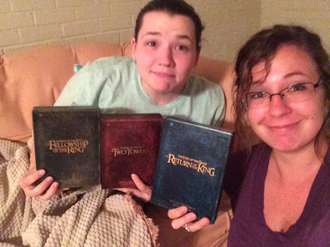 [The college marathon, interrupted by my roommate’s engagement, which was exciting and all, but….we were right in the middle of Return of the King!]