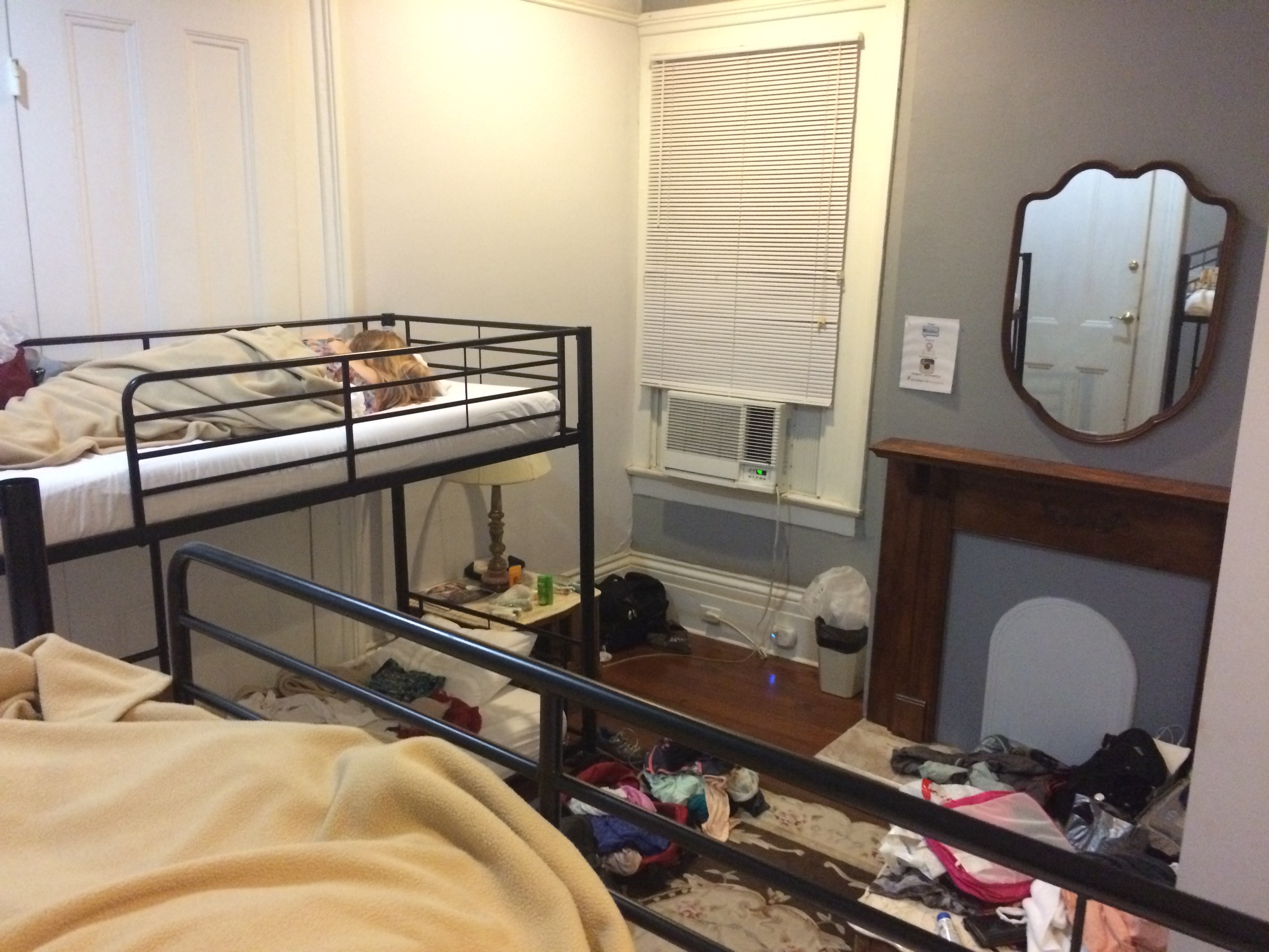 Michal and I were given top bunks in a room for six girls. More careful than me, Michal slept with her bag in the bunk, while I threw my stuff in a corner along with a naive (but validated) trust in humanity. The beds were just shaky enough to make me fear for my safety, though once lying down they were comfortable. We had control of the AC, and there were enough end tables and shelves around to keep six people’s suitcases separated.