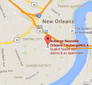 Auberge Nouvelle initially seems removed from New Orleans action. Its trendy exterior is sandwiched between older, more decrepit buildings on a street empty of stores or restaurants. I worried I had made a terrible decision when we first taxied to its door. However, the hostel’s location is perfectly situated between two of New Orleans’ hot spots: the French Quarter and the Garden District. Both are an easy half hour or less walk away, and we caught the trolley just two blocks away on St. Charles Avenue.
