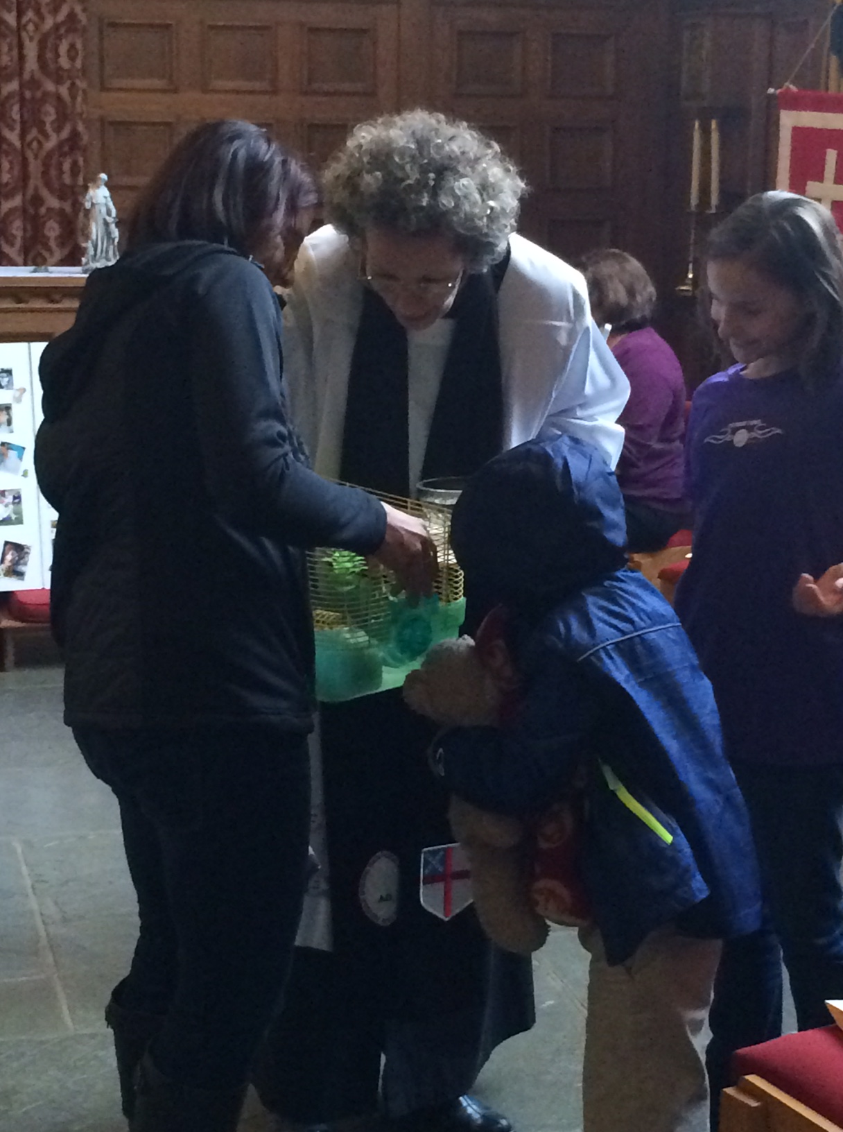 Today is the Feast of St. Francis, and the Episcopalian church near Elizabeth’s house was celebrating the Blessing of the Animals. We decided to take Elizabeth’s dog Cookie, and I loved the service so much.